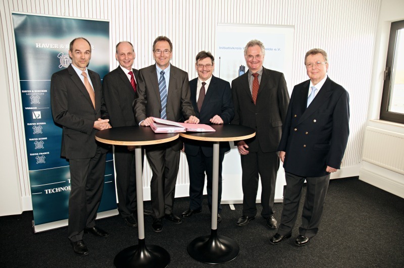 Mitte April 2012 wurde im Institut für Innovation in Oelde ein Forschungsauftrag zwischen HAVER & BOECKER und dem An-Institut der Fachhochschule Südwestfalen (WGS Wissenschaftliche Genossenschaft Südwestfalen) unterzeichnet (Bild). Bereits seit fünf Jahren arbeiten die Fachhochschule Südwestfalen und HAVER & BOECKER erfolgreich auf dem Gebiet des berufs- und ausbildungsbegleitenden Studiums in Oelde zusammen. Nun möchten sich Wirtschaft und Wissenschaft durch konkrete Forschungs- und Entwicklungsprojekte noch weiter verzahnen. Die wissenschaftlichen Ergebnisse wird HAVER & BOECKER in neue Produkte für die Märkte von morgen umsetzen.