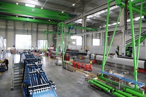 Die größte Baumaßnahme der letzten Jahre fand seit 2015 im Straubinger Werk 2 statt. Kaum 10 Jahre, nachdem das Werk 2008 im Industriegebiet Hafen in Betrieb gegangen war, ­wurden die Produktionsflächen umfangreich erweitert. Auf insgesamt 35 000 m² entstanden in den vergangenen zwei Jahren Fertigungs- und Lagerflächen, sowie eine Produktionshalle mit 6700 m² Fläche. Der Maschinenversand wurde neu strukturiert, Lagerflächen erweitert und Versandabläufe optimiert. LKWs fahren nun zur Verladung direkt unter dem eigens dafür ent­wickelten SENNEBOGEN 5500 Portal-Raupenkran hindurch. Dieser deckt mit dem verfahrbaren Portal eine Lagerfläche von 10 000 m² sehr effektiv ab. Bauteile bis 35 m Länge bekommen in der neuen Großlackierkabine ihren hochwertigen Schutzlack, und mit großen Flächen für Finish und kundenspezifische Anpassungen (Customizing) wurde in den neuen Hallen Platz geschaffen, um für weiteres Wachstum gerade im Bereich der Großmaschinen gut aufgestellt zu sein.