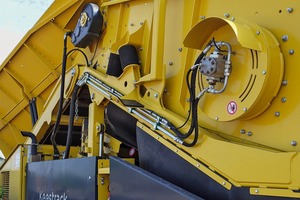 Das gilt auch für die vollhybride Version Keestrack K5e, die mit unter 1000 kg Mehrgewicht gegenüber der diesel-hydraulischen Ausführung keinerlei Einschränkungen in der Transportpraxis gewährleistet. Herzstück der K5e ist der unmittelbar an den Dieselmotor gekoppelte 105-kVA-Generator, der direkt alle elektrischen Verbraucher (Trommelmotoren, Nebenaggregate, Beleuchtung, etc.) versorgt. Alle Hydraulik-Komponenten (Plattenaufgeber, Sieberreger, Hubzylinder und Raupenantriebe) werden über eine zentrale 45-kW-starke Einheit aus E-Motor und Load-Sensing-Hydraulik angetrieben.