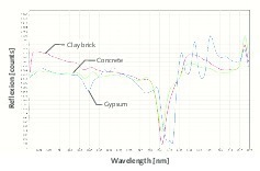 In der Anlernphase wurden dem Gemisch zunächst Vertreter der verschiedenen Bestandteile entnommen und deren NIR- Spektren ermittelt (Bild 7). Darauf aufbauend erfolgte die Konfiguration des Sortierers. Ziegel, Schlacke, Gips und Holz sollten als Störstoffe erkannt und mittels Druckluftimpuls ausgetragen werden. Die rezyklierte Gesteinskörnung stellt das akzeptierte Material dar.