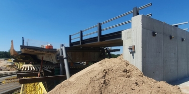 Während Autos und Lkw das Mönchhof-Dreieck bei Frankfurt am Main (Hessen) kreuzen, schiebt sich ein Koloss über die A3: eine über 130 m lange und 1200 t schwere Vorschubrüstung. Diese dient...