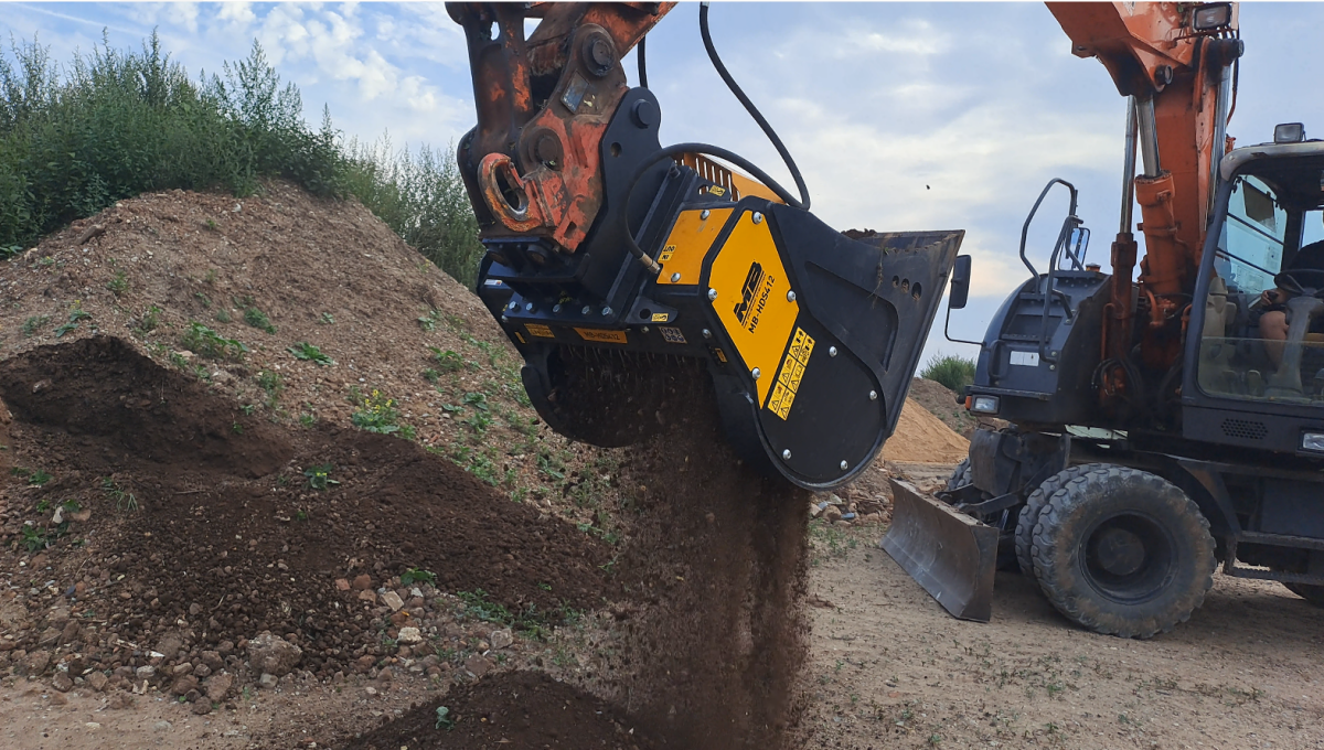 Die Wiederverwertung von Abfallmaterialien zur Schonung von Ressourcen und Umwelt ist von Beginn an das Anliegen bei der Entwicklung von allen MB Crusher-Anbaugeräten. Der MB Schaufelseparator wurde entwickelt, um die Aufbereitung effizienter und kostengünstiger zu machen. Direkt auf der Baustelle oder auf einem Lagerplatz. Er kann zur Bodenverbesserung, zur Verfüllung von Leitungsgräben oder zur Aufbereitung verwendet werden. Abfälle werden zu wiederverwertbaren Materialien und das in nur einem Arbeitsgang bis hin zum Verfüllen oder Verladen.