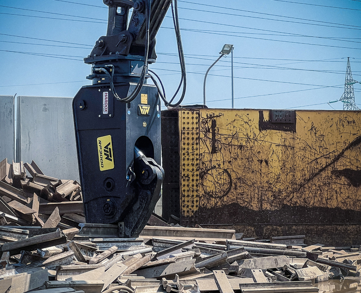 Mit den Produkten von VTN Europe hat Moerschen Mobile Aufbereitung sich mit die modernste Produktpalette gesichert, die heute auf dem Markt zu bekommen ist. Über mehr als 50 Jahre sind die norditalienischen Maschinenspezialisten zu marktführender Kompetenz gewachsen. Das kommt zum Beispiel bei den Pulverisierer-/Abbruchzangen-Baureihen zum Tragen, für die VTN eigens ein integriertes Booster-System entwickelt hat. Die Bezeichnung ist Programm: Der Booster verstärkt den Hydraulikdruck im Bedarfsfall automatisch und liefert dadurch augenblicklich eine deutlich größere Schließkraft und erhöht die Arbeitsgeschwindigkeit, ohne gleichzeitig den Hydraulikleistungsabruf der Trägermaschine zu erhöhen! Das System basiert auf einem hochmodernen Konzept mit 4-Kammer-Zylindern in 2-Wege-Ausführung. Damit arbeitet die Schere gleichmäßig und schnell mit höchster Penetrationsfunktion. Hier kommen die VTN-Geräte da weiter, wo Wettbewerber ihre Grenzen haben. Wenn das nicht reicht, können die VTN-Pulverisierer noch zulegen: Mit der ebenfalls integrierten Impuls-Funktion wird bei maximaler Schließung der Schere durch eine Schlagfunktion weiter eingedrungen.