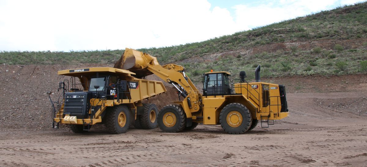 Mit dem High-Lift-Hubgerüst füllt der Cat 988K XE den SKW Cat 775G schnell mit fünf bis sechs Ladespielen