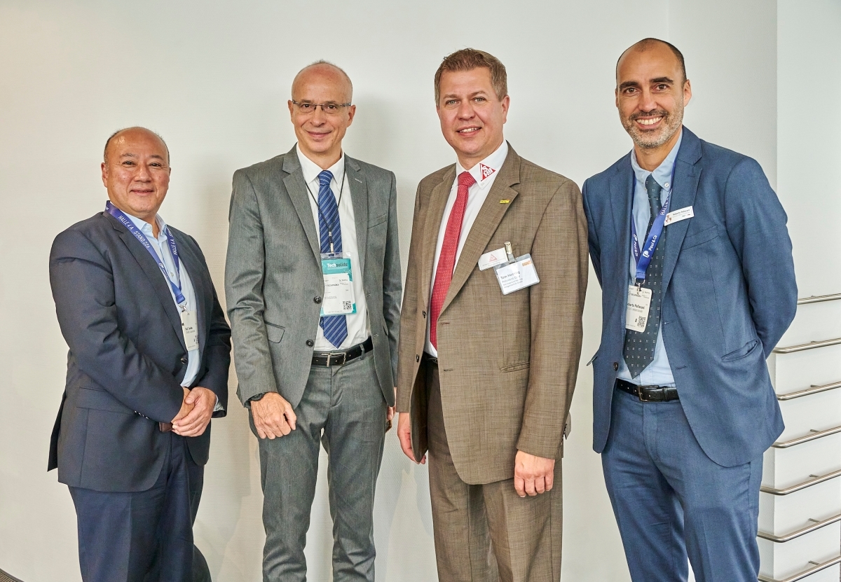 Beim Verbandstreffen im Rahmen der POWTECH sprachen Daiji Tanabe, Ferran Simón, Tom Henning und Roberto Pellacani (von links) über internationale Initiativen