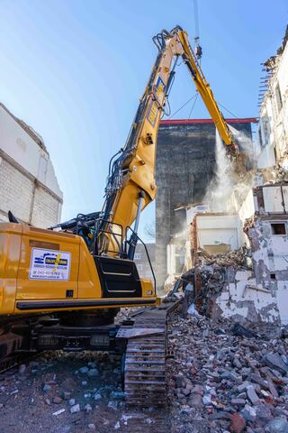 Nicht umsonst erfolgen Investitionen in den Maschinenpark in schöner Regelmäßigkeit bei Ehlert & Söhne, um auf den neuesten Stand der Technik zurückgreifen zu können. Das gilt nicht nur für die Cat 326 Kettenbagger, sondern auch für einen neuen Cat 340 UHD Longfrontbagger. Solche Technik ist erforderlich, um eine umfassende Bandbreite an Aufgabenstellungen zu bewältigen – insbesondere, wenn es um Gebäude mit Bauhöhen bis 27 Meter geht. Hier hat sich das Unternehmen umfassende Kompetenzen erworben. Aber auch bei Industrie- und Bunkerabbrüchen, bei der Beseitigung von Brandschäden, der Asbest- und Schadstoffsanierung, Sprengarbeiten sowie bei Erd- und Tiefbauarbeiten zahlt es sich aus, dass der mittelständische Familienbetrieb in der vierten Generation durch jahrzehntelange Erfahrung weiß, wie er auf die vielfältigen Herausforderungen auf der Baustelle reagieren muss.