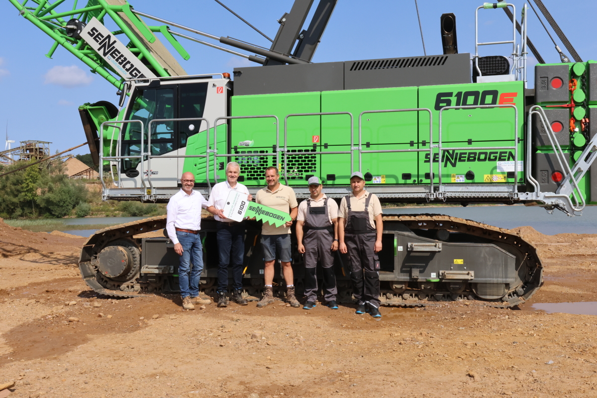Die Kiesgrube Bokshorn im nordrhein-westfälischen Porta Westfalica ist ein Familienbetrieb mit Tradition. Bereits 1882 gegründet, produziert das Kieswerk – mittlerweile am 3. Standort – bis heute jährlich rund 150 000 t an Sand und Kies für die Betonindustrie, darunter für den Fertigbau und Pflastersteinwerke. Als der aktuell geschäftsführende Gesellschafter Henrik Franke den Betrieb 2024 von seinem Vater übernommen hatte, wurde das Abbaugebiet der Kiesgrube erweitert. Um für die neue Fläche gewappnet zu sein, sollte auch der Maschinenpark rechtzeitig ein Update erhalten. Somit wurde die alte elektrische, aber unflexible Schrapperanlage durch den 100 Tonnen Seilbagger SENNEBOGEN 6100 HD ersetzt.