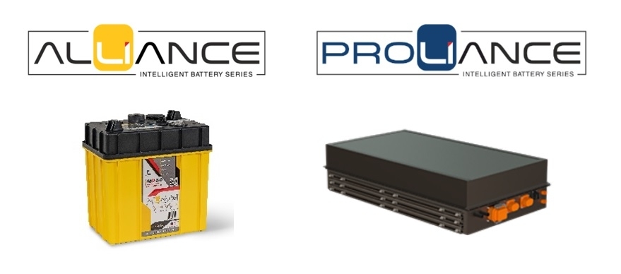 Niederspannungsbatteriepack „Alliance Intelligent Battery Series“ (links) und Hochspannungsbatteriepack „Proliance Intelligent Battery Series“ (rechts)