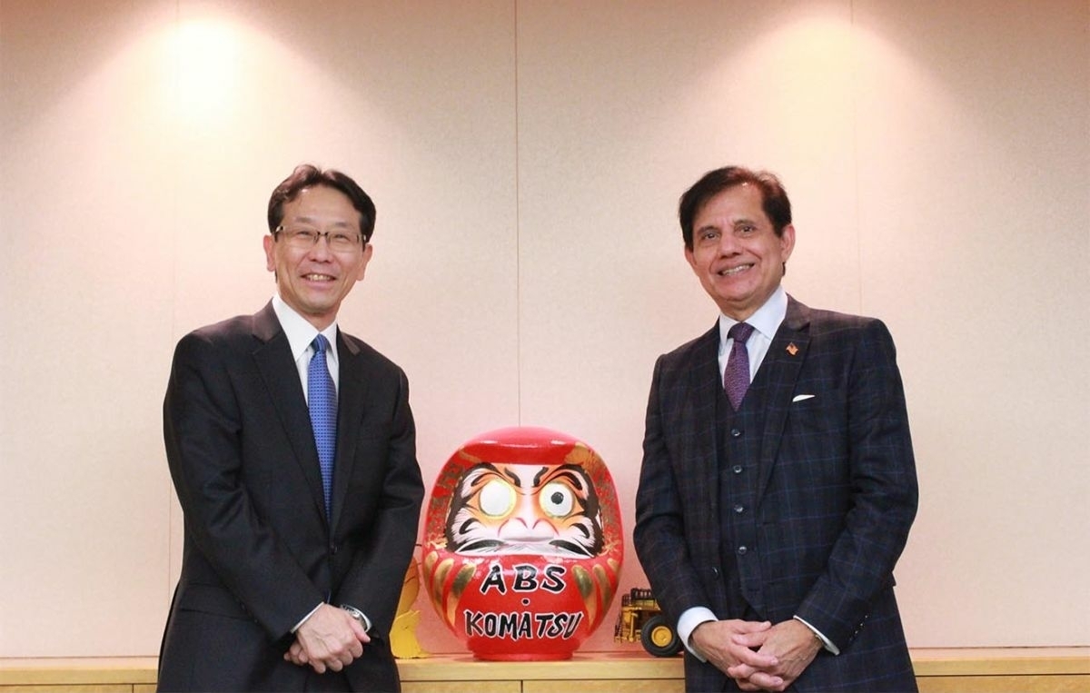 Hiroyuki Ogawa, Präsident und CEO von Komatsu Ltd. (Links) und Subhash Dhar, Gründer, Chairman und CEO von ABS (rechts)