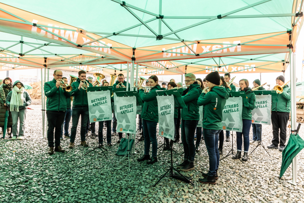 Für feierliche Stimmung beim Spatenstich sorgte die hauseigene Betriebskapelle von Max Wild