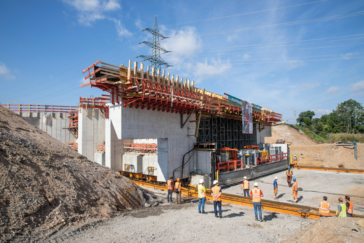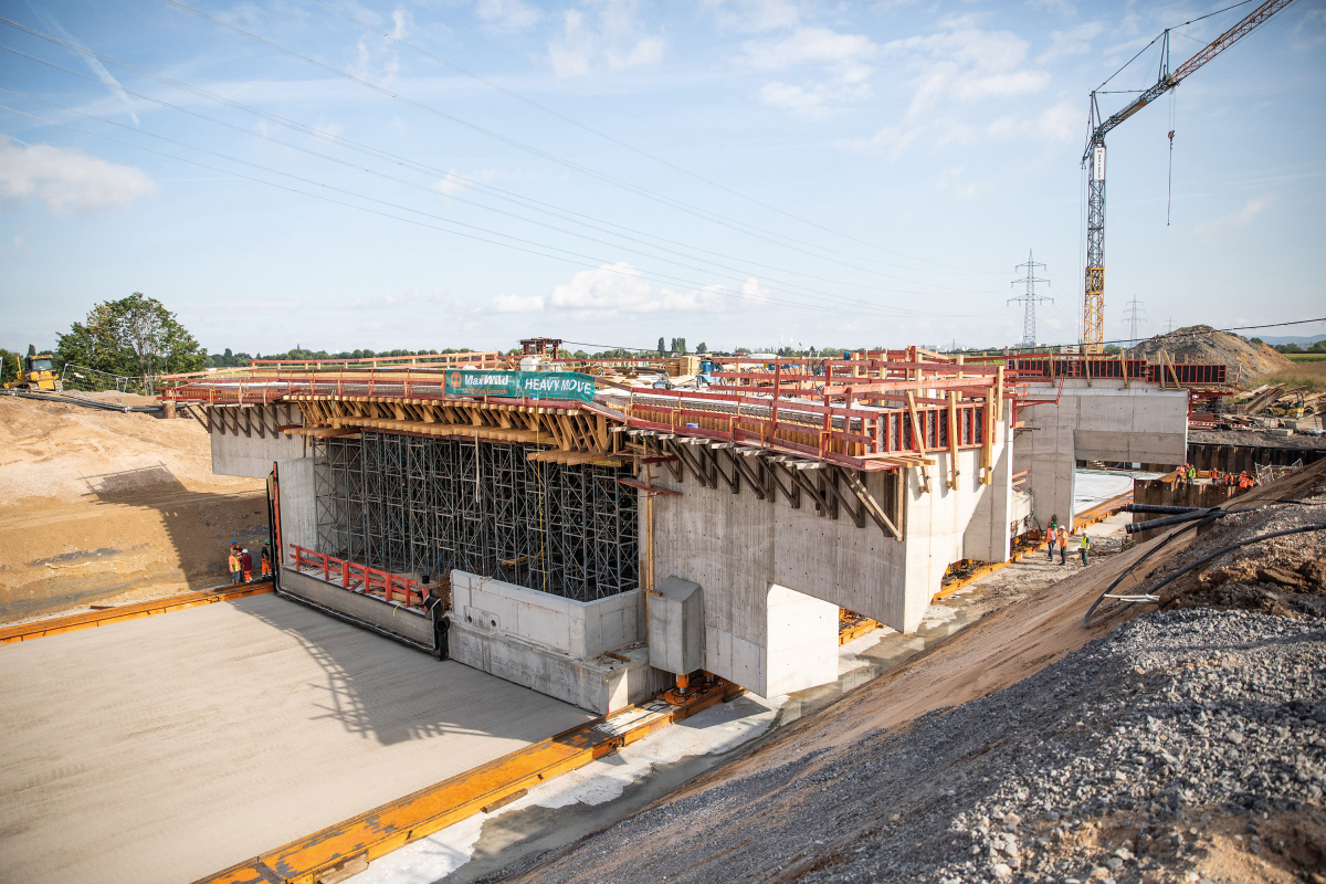 In der Praxis hat das Arbeiten mit dem Fluidts-Verschubsystem von Max Wild gleich mehrere Vorteile. Zum einen passiert der Verschub besonders effizient: Das Bauwerk bewegt sich mit einem Meter pro Minute und ist damit schneller am neuen Platz als mit herkömmlichen Systemen. Zudem können die Verschubbahnen direkt auf einem tragfähigen Erdplanum verlegt werden. Das spart Zeit und Geld gegenüber anderen Techniken, die beispielsweise auf Träger, Betonfundamente oder Schienen setzen.