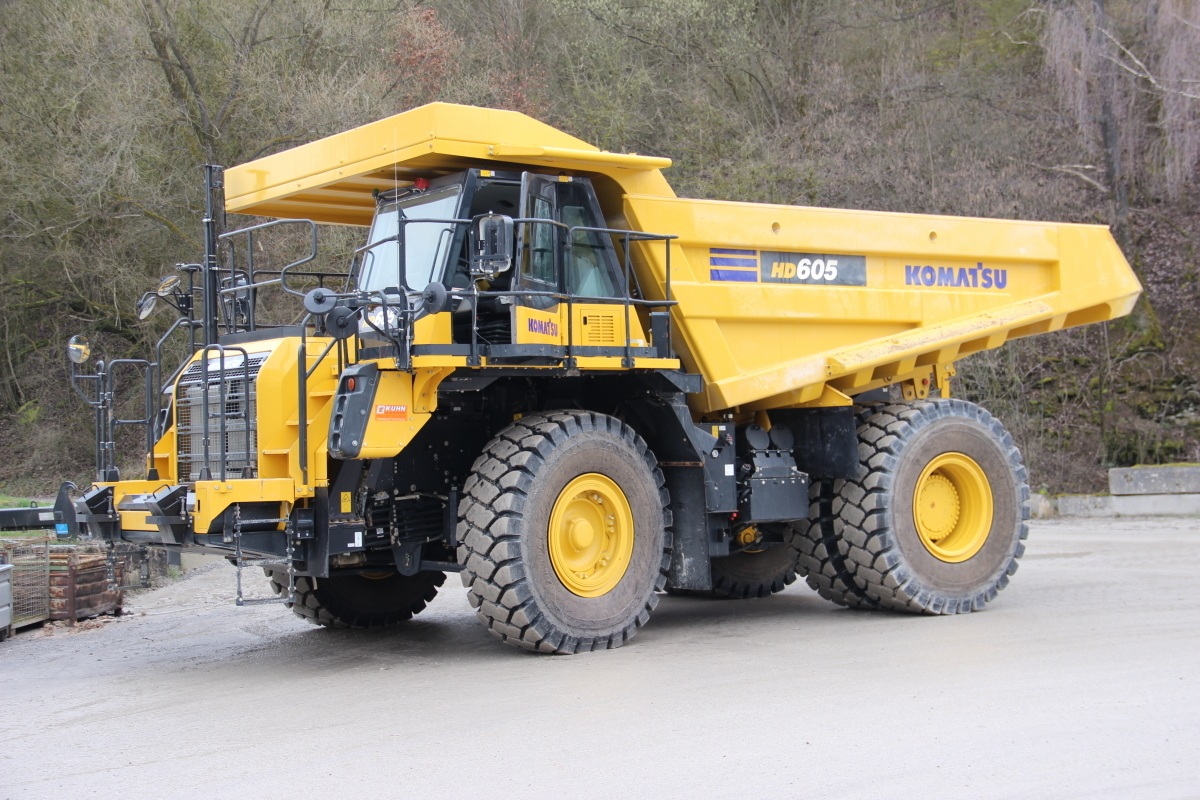Der Muldenkipper HD605-8 zeichnet sich durch einen besonders kraftstoffsparenden Antriebsstrang und den kleinsten Wenderadius in dieser Klasse aus. „Das ist speziell für unsere engen Kurven eine wichtige Eigenschaft“, erklärt Schumann. Durch die MacPherson-Vorderradaufhängung mit dem speziellen Komatsu A-Rahmen, können deutlich kürzere Zykluszeiten bei hervorragendem Fahrkomfort realisiert werden. Des Weiteren verfügt der Muldenkipper über einen großen LCD-Farbmonitor zur einfachen Bedienung und höchste Sicherheitsstandards für die Fahrer.