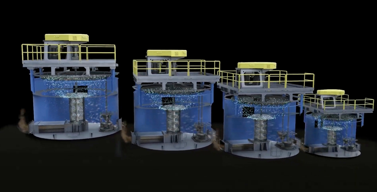 Die Animation, die mit anschaulichen 3D-Schnittdarstellungen und Prozessablaufgrafiken arbeitet, hebt das innovative Design des StackCell-Systems hervor. Die Suspension durchläuft jede StackCell-Stufe, wo die intensive Vermischung mit Mikrobläschen eine schnelle Anlagerung der Bläschen an die Partikel bewirkt. Die Zuschauer erhalten einen Einblick, wie die zweistufige Konfiguration die Flotation revolutioniert – durch die Trennung der hochenergetischen Partikelabscheidung von der Schaumrückgewinnung werden eine schnellere Flotation und höherwertige Konzentrate auf deutlich kleinerem Raum ermöglicht.