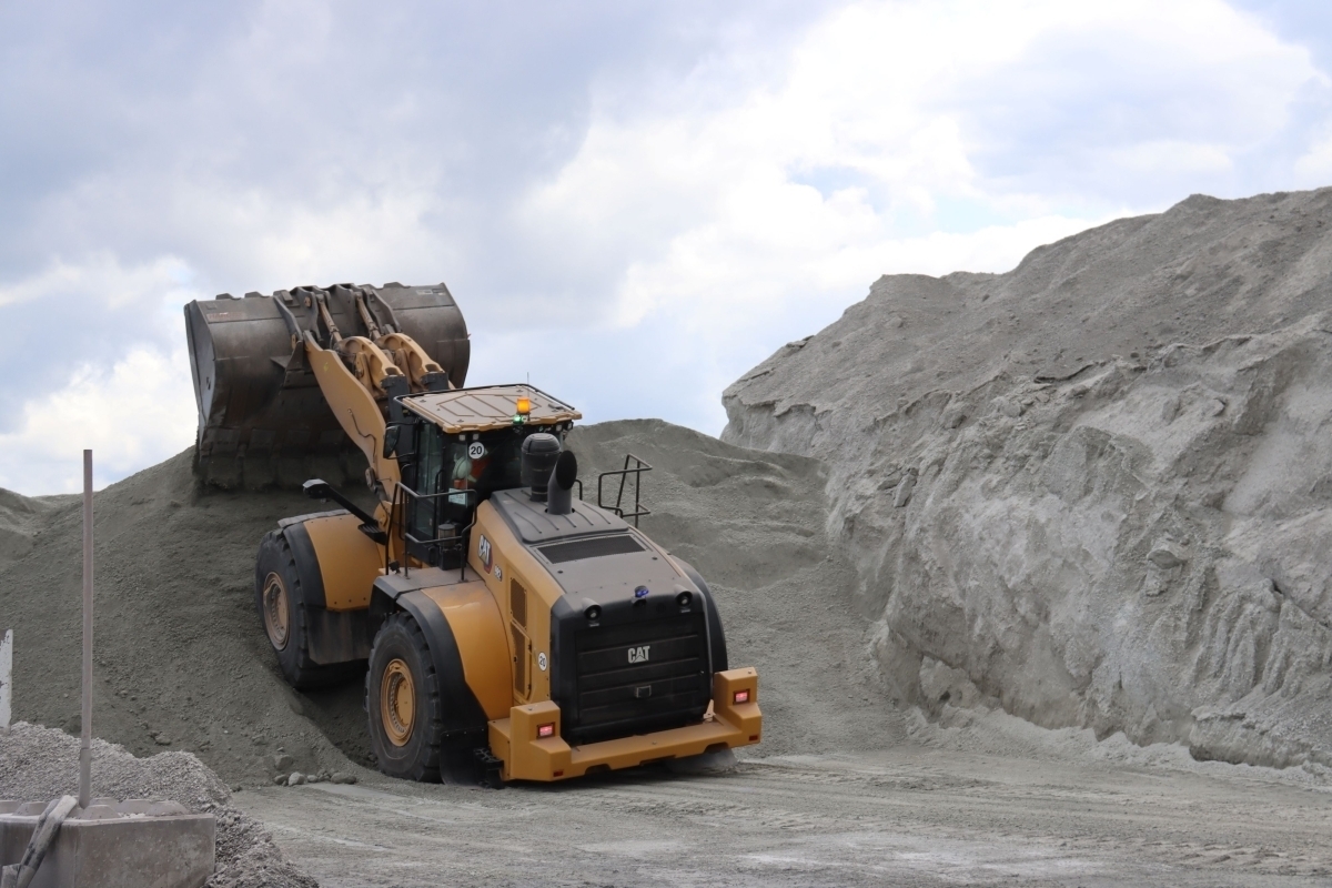 Die Aufbereitungsanlage zu beschicken und das Fertigmaterial aufzuhalden – das ist der Job für den Cat Radlader 982 in der Ausführung für Stahlwerke
