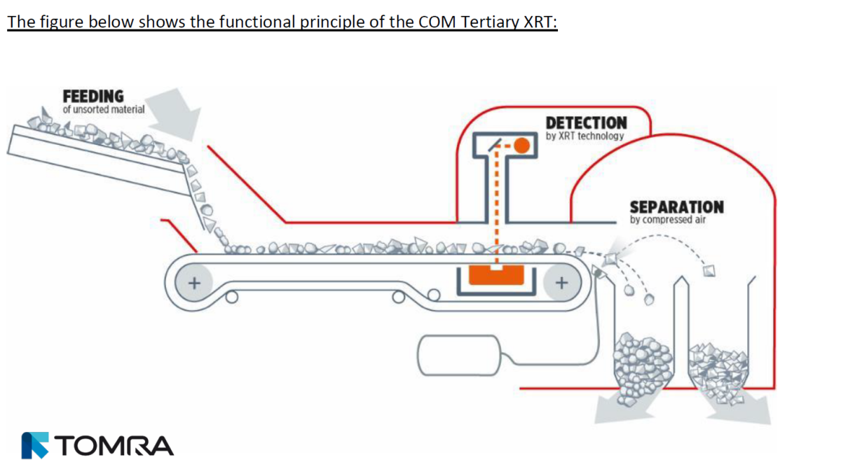 Die COM Tertiary XRT zeichnet sich durch eine sehr präzise Erkennung und Ausscheidung insbesondere kleinerer Partikel aus. Die mechanische Konfiguration ist speziell auf dieses Material ausgelegt und mit leistungsstarken und präzisen Luftventilen ausgestattet