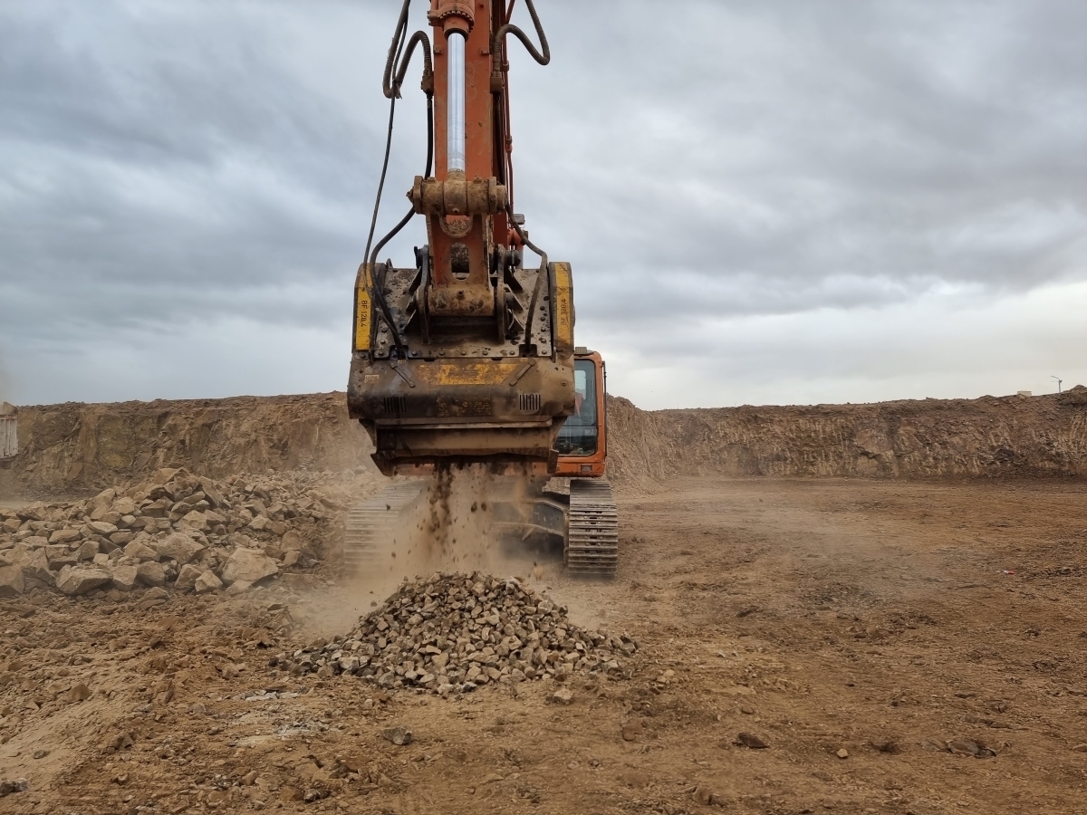 In Ägypten hatte ein Kunde in seinem Steinbruch eine große Menge an ungenutztem Basalt angesammelt. Die Lagerung dieses riesigen Materialhaufens war jedoch reine Geldverschwendung. Daher installierte er einen MB Crusher Backenbrecherlöffel BF120.4 an seinem Doosan 340-Bagger, um das Gestein direkt im Steinbruch zu verarbeiten und es vor Ort für interne Straßeninstandhaltungsarbeiten wiederzuverwenden.