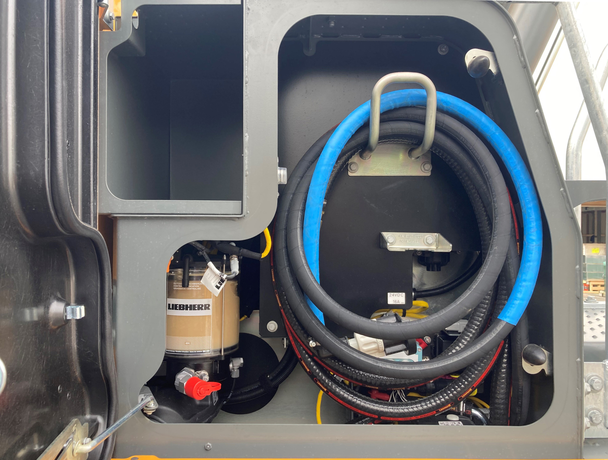 Mit einer innovativen Harnstoff-Befüllpumpe setzt Liebherr neue Maßstäbe in puncto Sicherheit, Komfort und Ergonomie. Einzigartig auf dem Markt ermöglicht dieses System das direkte Befüllen vom Boden aus und eliminiert jegliches Risiko des Überlaufens, von Verschmutzungen und Korrosion. Der Fahrer muss nicht mehr vom Oberwagen auf- oder absteigen: Der Vorgang erfolgt schnell und mühelos und spart wertvolle Zeit. In Kombination mit der Kraftstoff-Befüllpumpe etabliert sich diese exklusive Liebherr-Lösung als entscheidender Vorteil auf anspruchsvollen Baustellen.