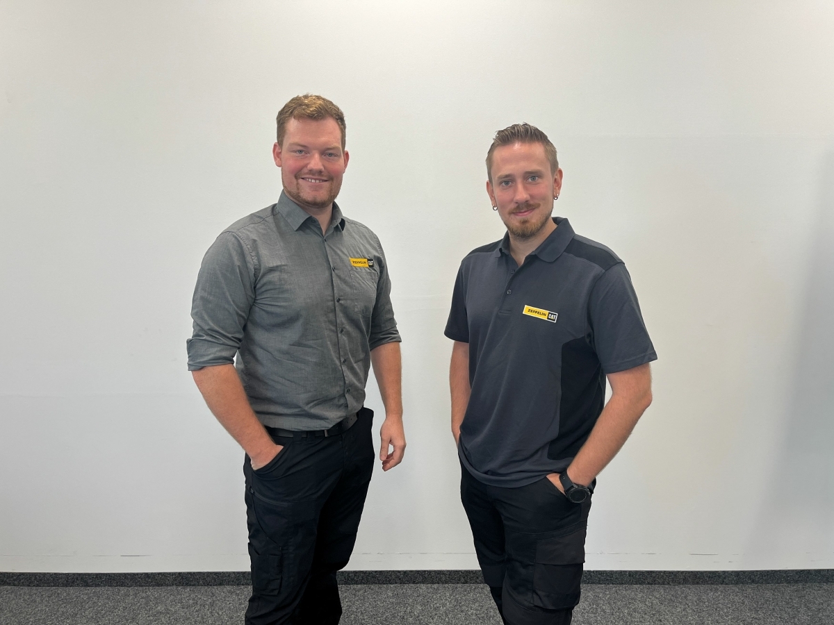 Sebastian Angermeier (links) und Simon Ferstl arbeiten als Instruktoren in der Abteilung Service-Technik-Schulung bei Zeppelin