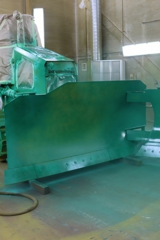 Grundierung für den Korrosionsschutz und Haftgrund müssen aufgetragen werden, bevor dann die Farbe aufgesprüht wird. Da die Bauteile einer Baumaschine aus unterschiedlichen Materialien wie Stahl, Kunststoff oder Aluminium bestehen, muss auch der Lack auf unterschiedlichen Substanzen haften können. Eine Lackierkabine wie sie in der Automobilindustrie üblich ist, gibt es bei Baumaschinen nicht. Hier ist noch Handarbeit mit der Sprühpistole angesagt. Entsprechend wichtig ist eine moderne Filtertechnik und Anlage, über die Farbpartikel abgesaugt werden. Um den Lackierprozess für die Zukunft neu auszurichten, war eine neue Trafostation für die neue Absauganlage nötig. Damit auch hier der Stromverbrauch beim Lackieren und Heizenergie beim Trocknen gesenkt werden, nutzt die Anlagentechnik Wärmerückgewinnung. „Wir erreichen dadurch eine deutliche Energieeinsparung, entlasten durch weniger CO2 die Umwelt und senken Kosten“, fasst der Zeppelin Serviceleiter die Vorteile zusammen.