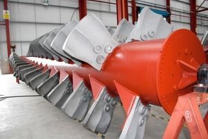 The new Rotomax RX150 logwasher has been launched by CDE Global offering increased levels of attrition to a range of materials as a result of a number of new design features. The Rotomax logwasher was first introduced on washing projects within the quarrying and construction and demolition waste recycling sectors in 2003 and the completion of this latest product development program sees the introduction of the third generation Rotomax (Fig. 1). The Rotomax is a dual shaft system driven by a single motor, drive and gearbox which ensures lower ongoing maintenance costs, maximum attrition of materials within the system and easy synchronisation of the gears. The most significant new development with the Rotomax RX150 relates to the construction and arrangement of the shafts and paddles within the unit (Fig. 2). The paddles are constructed from high chrome cast iron. This is the same specification of material as used in impactor crushers and exceeds the specification of paddles within other logwashers available on the global market.
