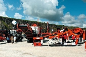During live machinery demonstrations visitors could follow the demonstration of the tracked jaw crusher QJ341 feeding a tracked cone crusher QH440, which then fed the crushed material for sizing to a triple deck tracked doublescreen QA450 (Fig. 3).
