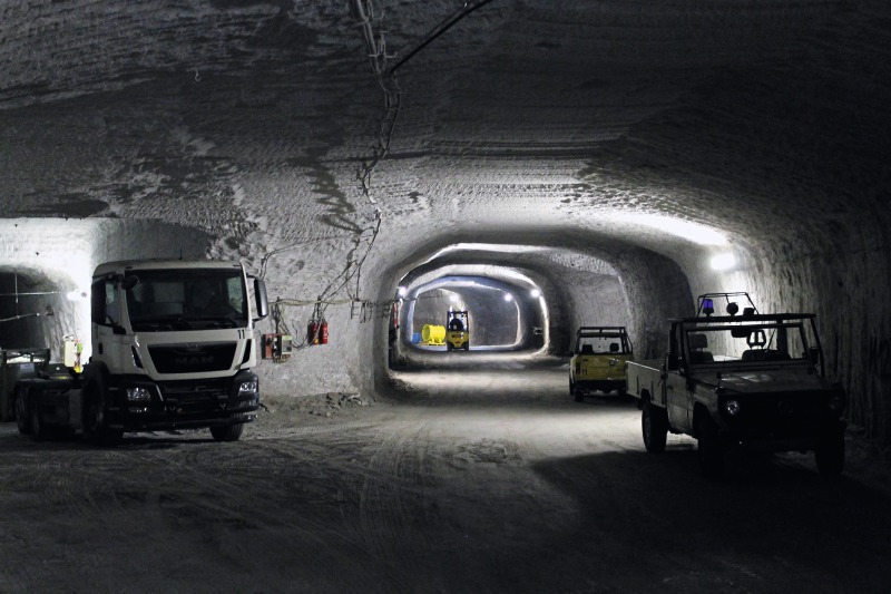 Trucks equipped with Hauser respiratory protection ventilationsystems are at the heart of this underground backfilling: The excavated, cathedral-like chambers are filled with waste, such as excavated materials, building rubble and other mineral materials. Filling the chambers that are no longer used provides, in addition to the existing salt columns, protection against major subsidence.