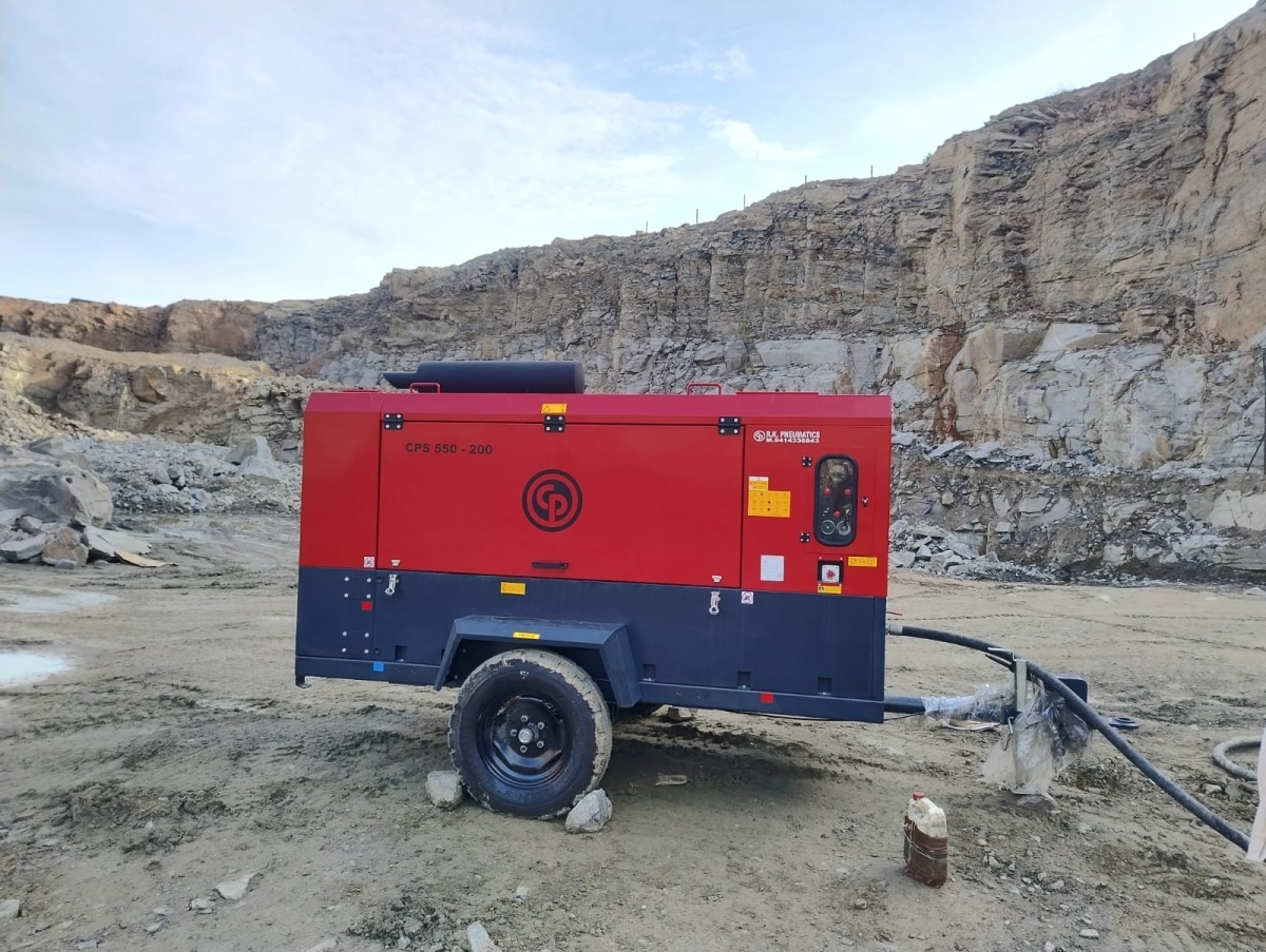 Rajasthan’s arid landscape and rugged terrain pose significant challenges for quarrying. To meet these operational demands, Maa Kripa invested in three Chicago Pneumatic units portable air compressors through the authorized dealer R.K., two CPS 450-200 and one CPS 550-200.