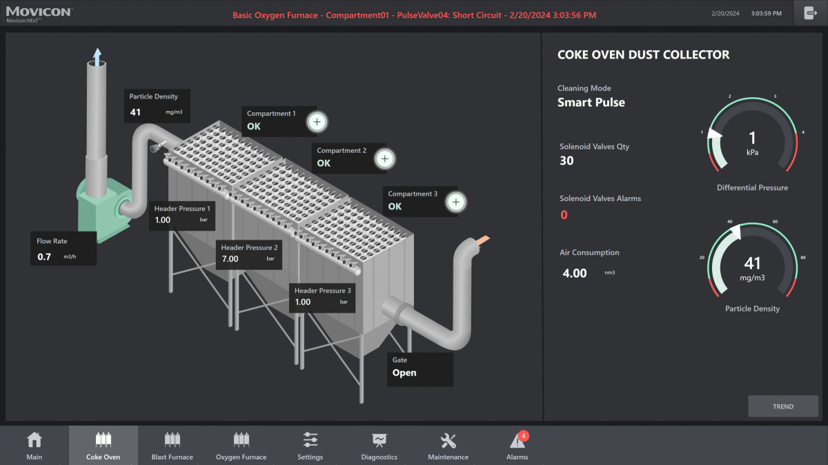 - Optimized control of pulse valves, including automated cleaning cycles of multiple filter lines.