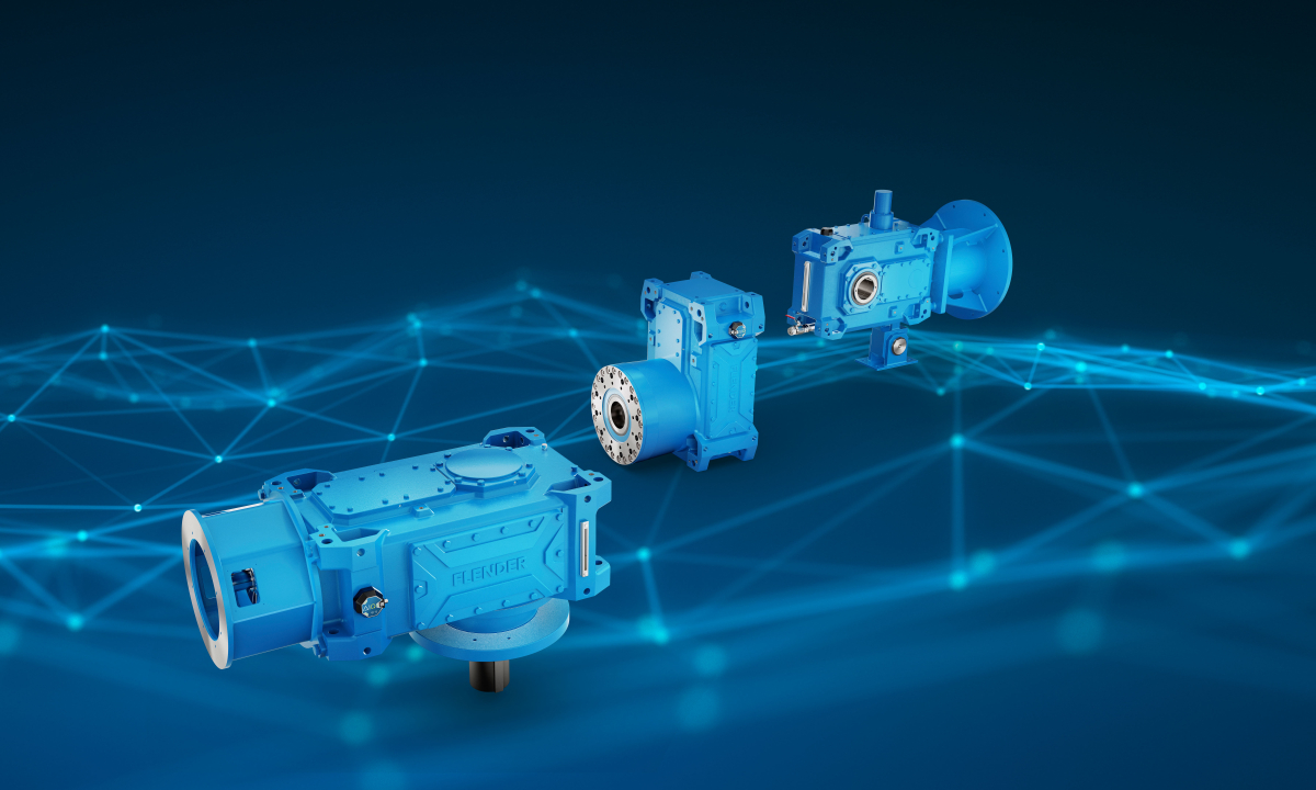 Versatility demonstrated: Flender One gearboxes shown with various mounting options and application-specific add-ons