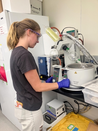 Amelia Stevenson is a chemistry major, seen here putting a reaction on the rotary evaporator