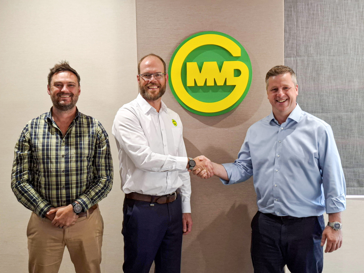 Janis Lombard and Willem Pieterse from MMD with Neil McIlwaine from MAGNA, pictured at MMD's South Africa location