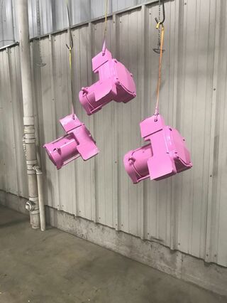Freshly painted industrial vibrators dry in preparation for the Go Pink! campaign