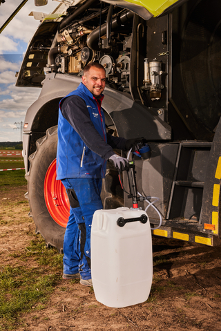 One of the users of the Lube Drive is the contracting company May from Steinfurt, which supports farmers in the region with field and harvesting work. The company operates a large fleet of machines and vehicles that require regular lubrication. “The compact design and the ability to simply connect the pump to a cordless screwdriver noticeably reduce strain on the hands, arms, and back,” says Michael Bundschuh, machinist and agricultural service technician at May. “For us, the Lube Drive is therefore more than just a technical aid; it offers real benefits in terms of workplace ergonomics and comfort.”